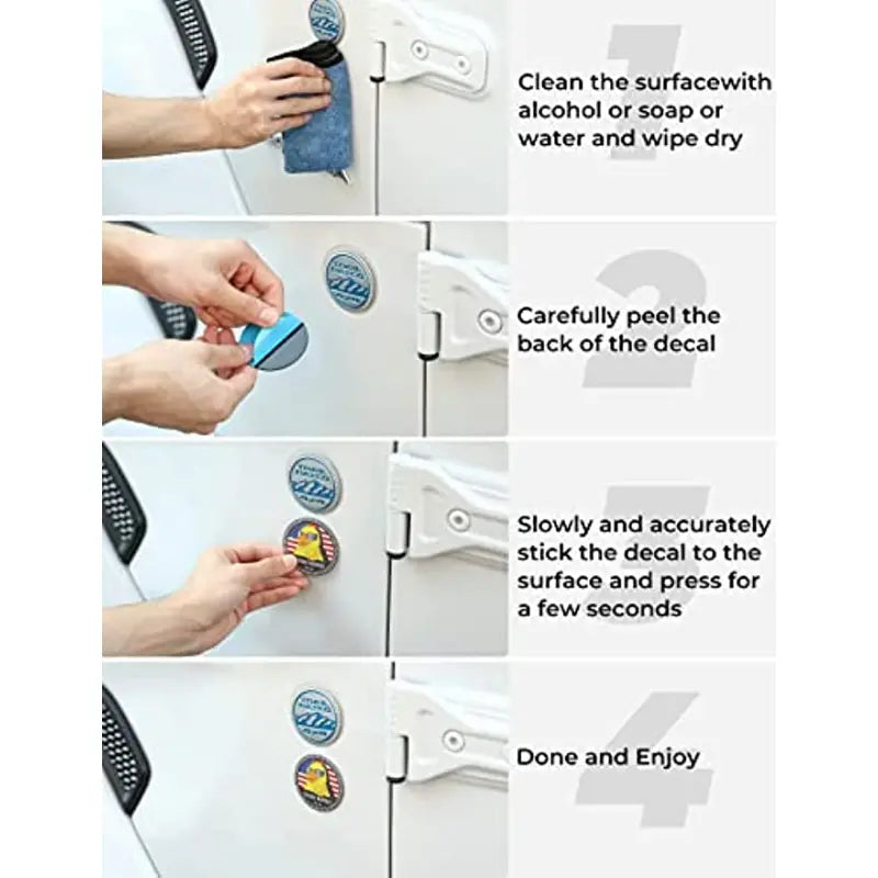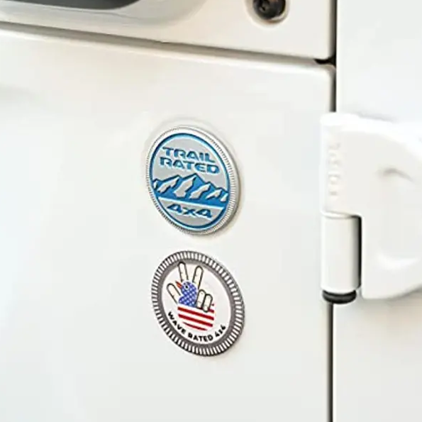 Patriotic "Wave Rated" Jeep Wrangler or Cherokee 4x4 Metallic Badge - Stick Anywhere