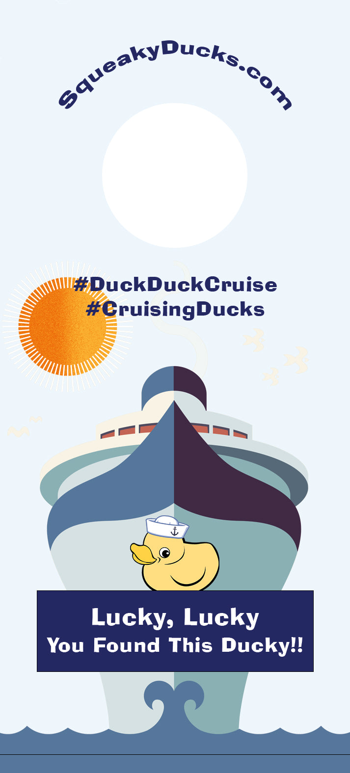 Bon Voyage! Available exclusively at SqueakyDucks.com, our Cruising Duck Tags are perfect when hiding ducks around cruise ships, or when gifting as "fish extenders" on your next cruise. It's always fun to be "ducked" - make someones day and duck them good!