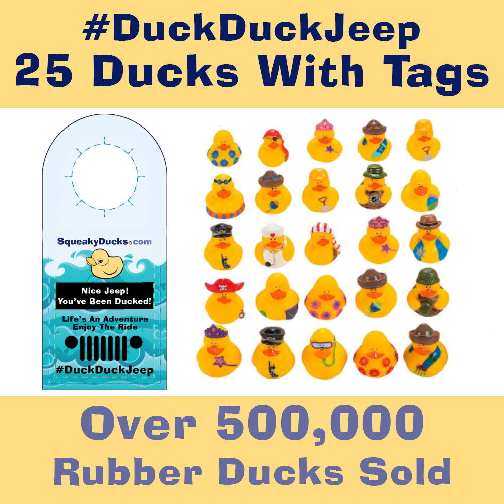 *Not affiliated with Jeep, nor are these ducks branded as "Jeep" or in the appearance of a Jeep; they are offered at a discounted price with tags for the fun of ducking other Jeep's.
