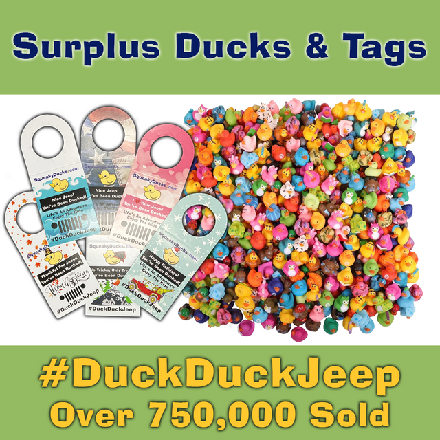 *Not affiliated with Jeep, nor are these ducks branded as "Jeep" or in the appearance of a Jeep; they are offered at a discounted price with tags for the fun of ducking other Jeep's.